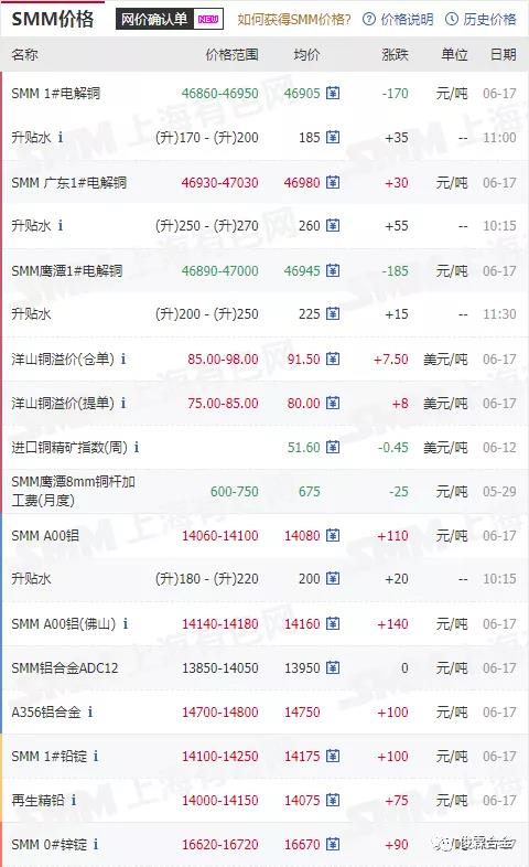 俊霖合金解讀:6月17日有色金屬行情