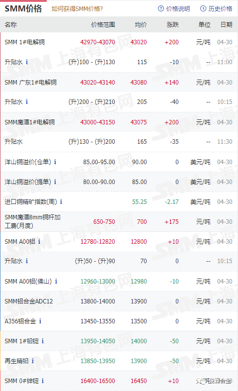 您現(xiàn)在所在位置:首頁?新聞資訊?行業(yè)新聞-俊霖合金解讀:4月30日有色金屬行情行業(yè)新聞