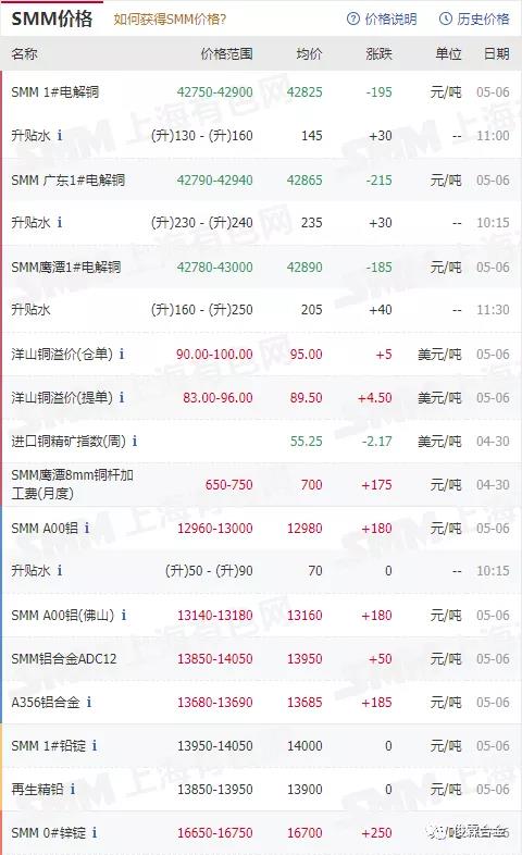 俊霖合金解讀:5月6日有色金屬行情