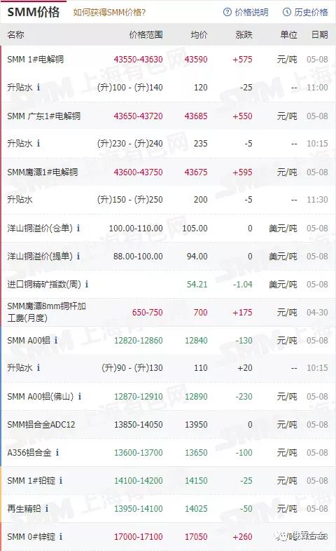 您現在所在位置:首頁?新聞資訊?行業(yè)新聞-俊霖合金解讀:5月8日有色金屬行情行業(yè)新聞