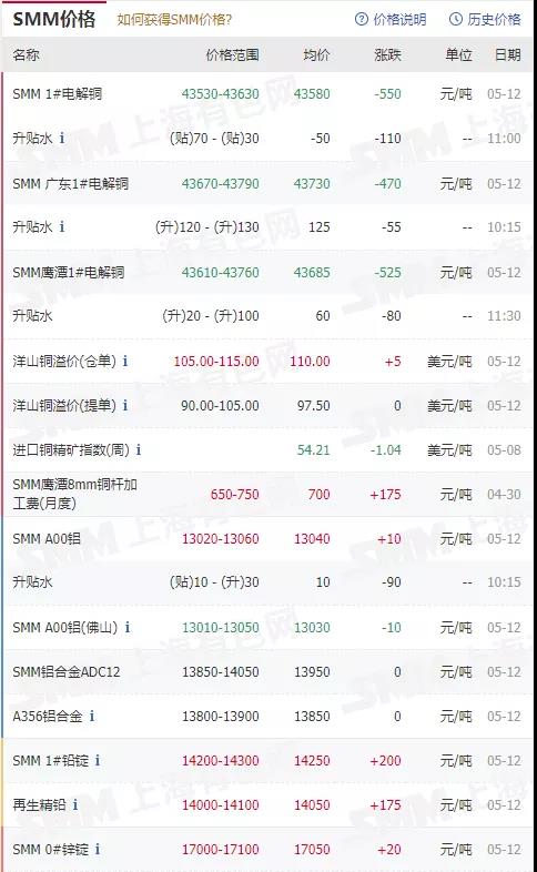 俊霖合金解讀:5月12日有色金屬行情